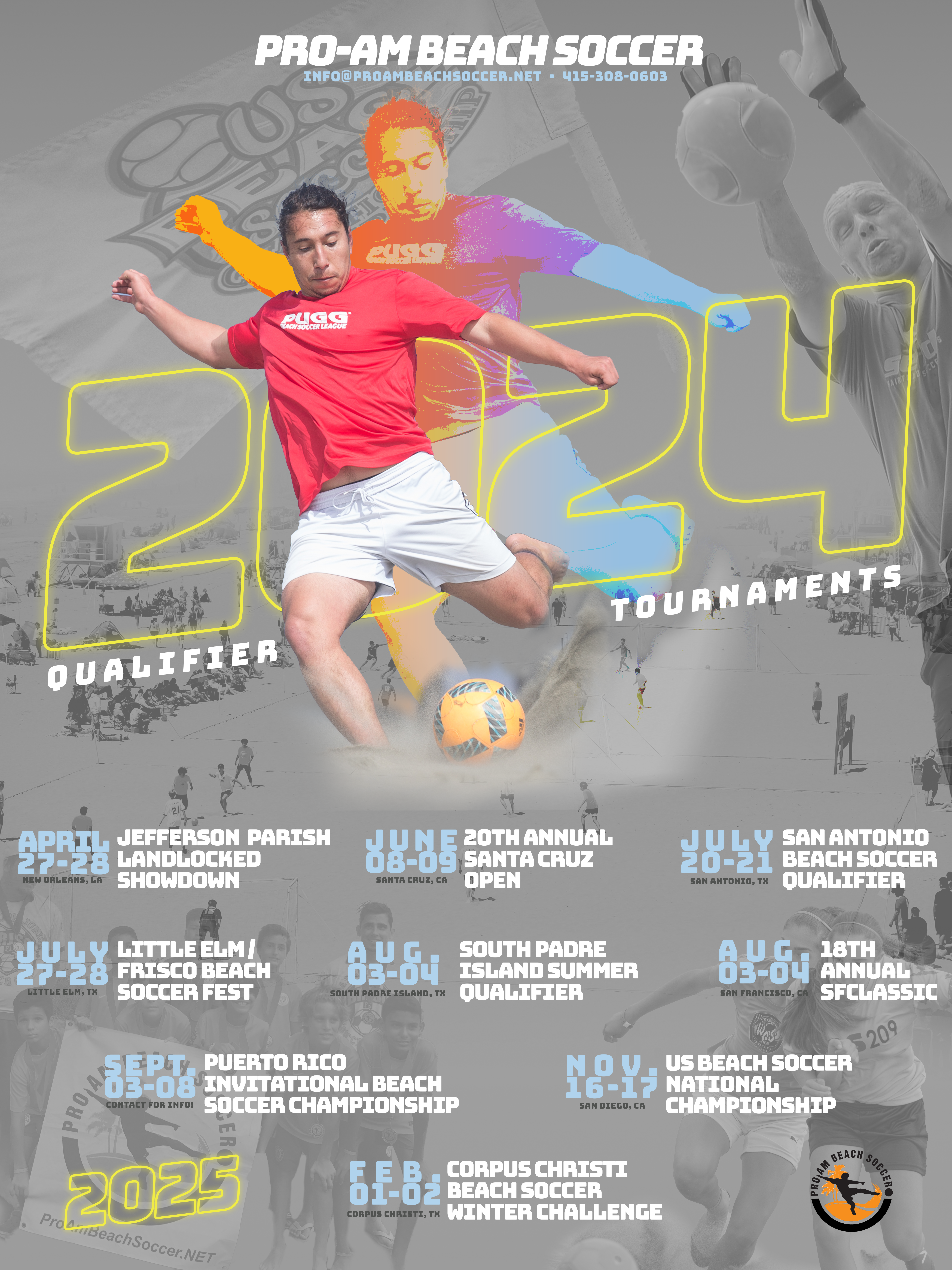 original design to display the dates and locations of the 2024-2025 beach soccer national qualifier tournaments