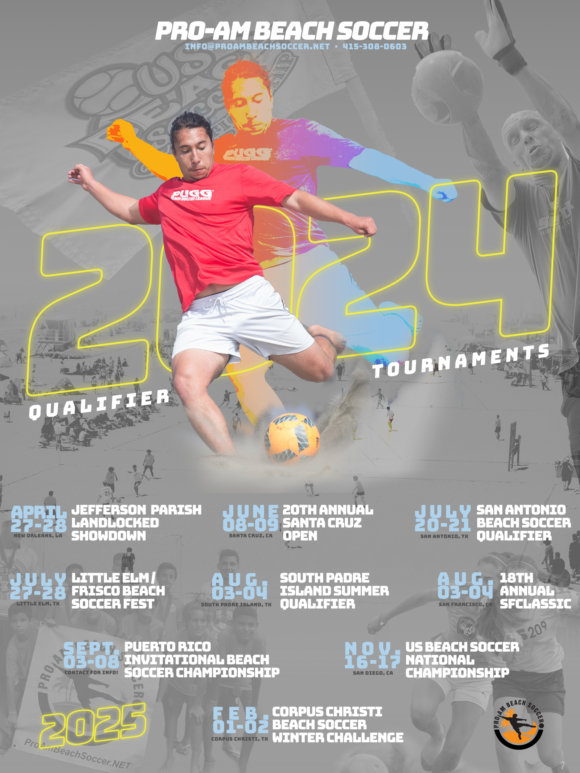 original design to display the dates and locations of the 2024-2025 beach soccer national qualifier tournaments